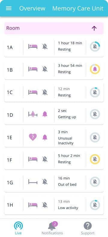 Set up personal alerts for residents who are at risk of falling. See who is going to leave the bed up to 70 seconds in advance.